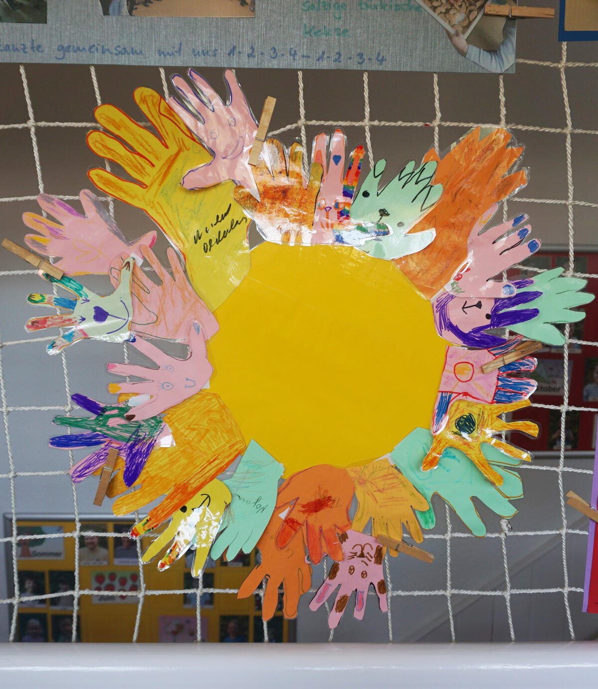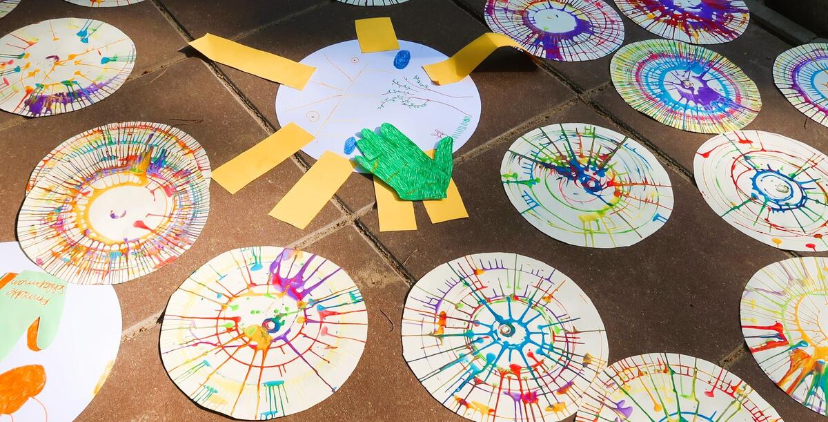 Bei schönstem Sonnenschein ging es mit kleinen Angeboten wie einem Kartoffellauf, drehen der Farbschleuder, einem Bewegungsparcour sowie Hände ausmalen für unsere Sonnenstrahlen weiter.